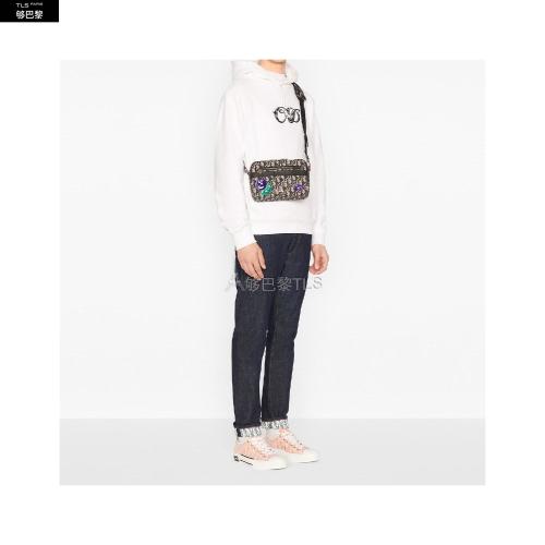 【包税】DIOR/迪奥 2021春夏新款 黑色徽标刺绣和小牛皮可调节肩带S8543SBTN_M941