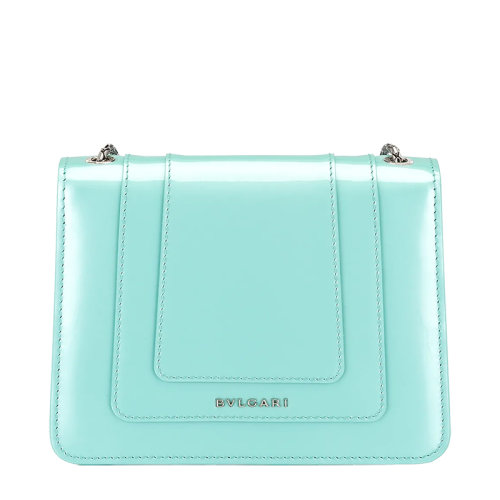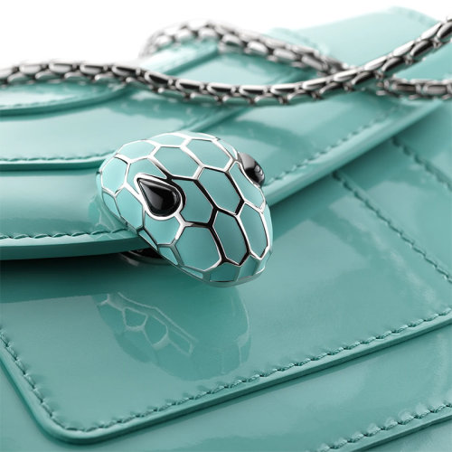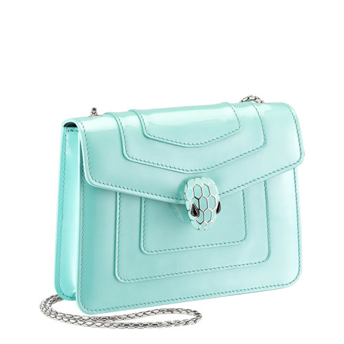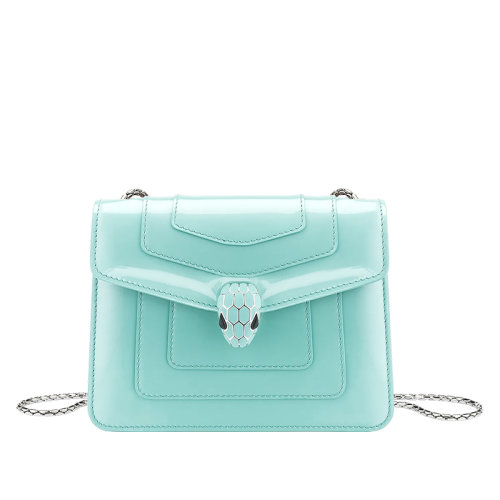 【包税】BVLGARI/宝格丽 21春夏新款SERPENTI FOREVER系列 女士小号浅蓝色漆皮小牛皮黄铜珐琅蛇首搭扣单肩斜挎包290934