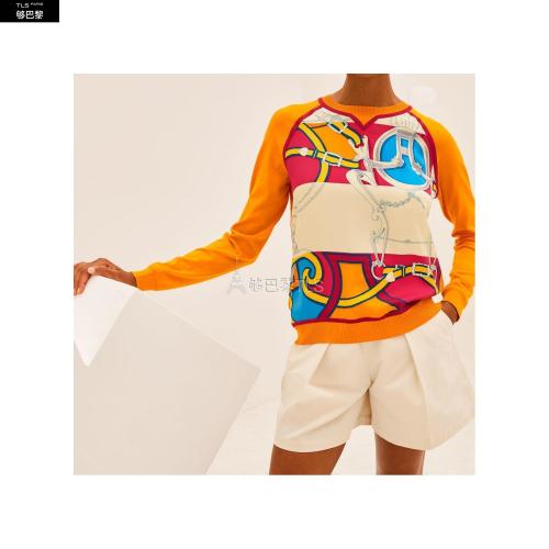 【包邮包税】 HERMES爱马仕 21年春夏 女士 针织衫 Pull Es*w*prit Sweat-shirt twillaine imprime « L%27In 预定商品2-8周发货