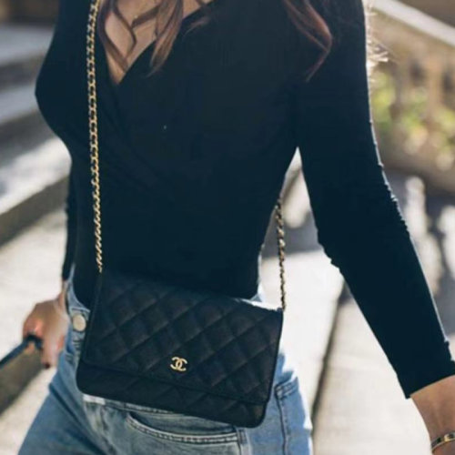 【包税】CHANEL/香奈儿 新款woc口盖包 荔枝纹 金扣链条单肩斜挎包